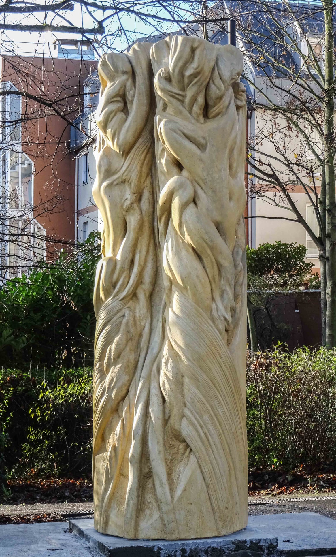 À défaut d’avoir pu réaliser le gnomon destiné à Lyon, qui aurait établi le dialogue entre une chute d’eau donnant naissance au cercle du temps, et une double cascade figée dans la pierre (sur le petit côté de l’angle droit d’un triangle rectangle de plus de 7 mètres) la sculpture a trouvé sa place dans ce lieu remarquablement composé et chargé de sens.